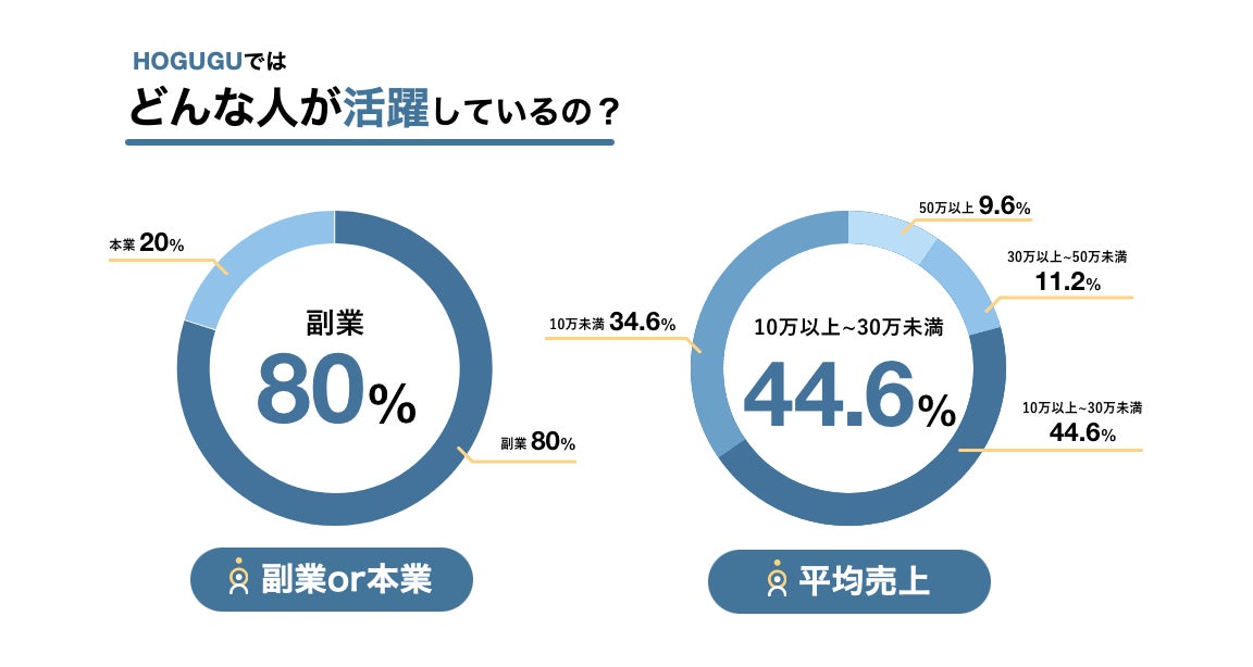 HOGUGUに登録しているセラピスト約1,000人中、報酬を得ているセラピストの平均売上は約16万円というデータが出ています。その内訳として30万円以上売上げている方が全体の約20%となっている。